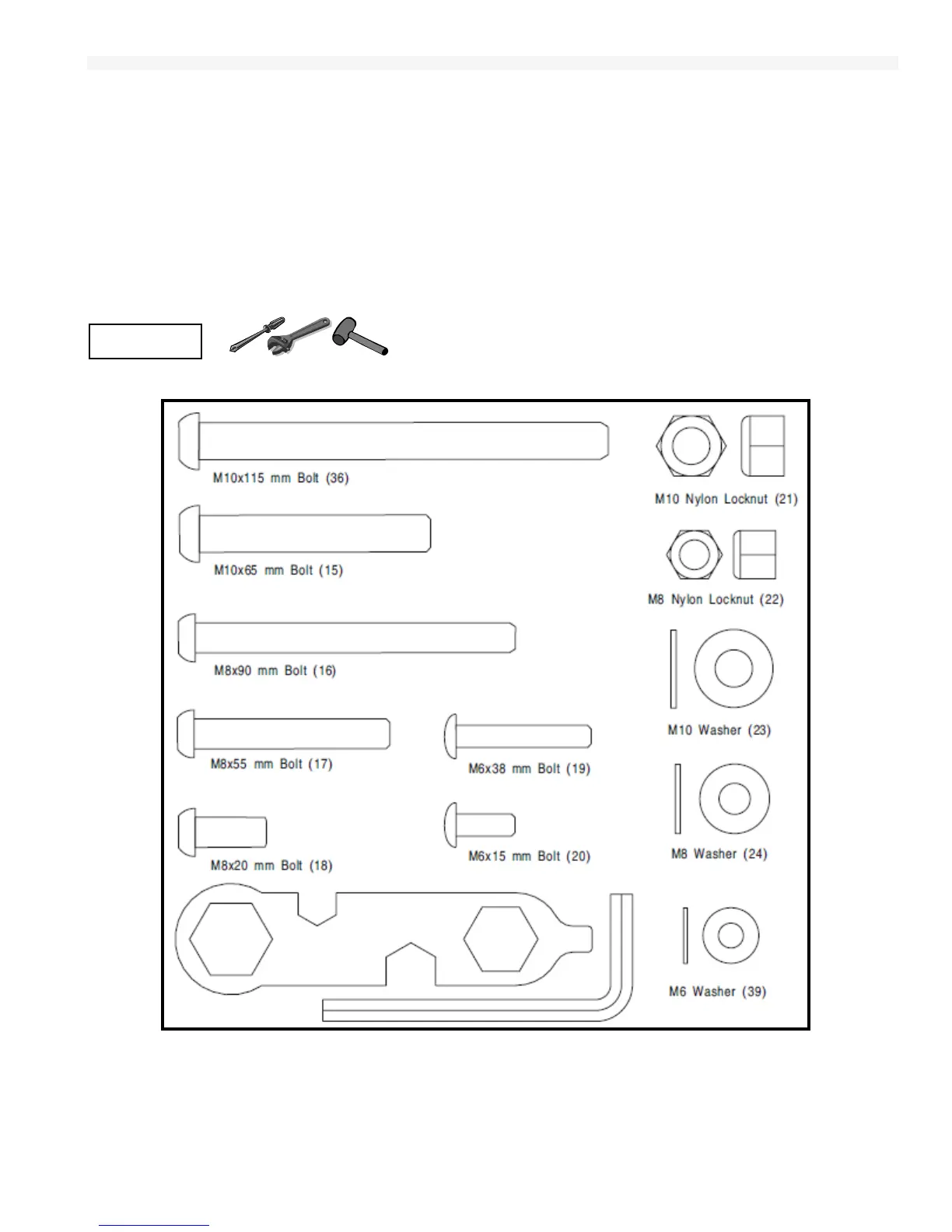 materials. Do not dispose of the packing materials until assembly is completed. See below a list