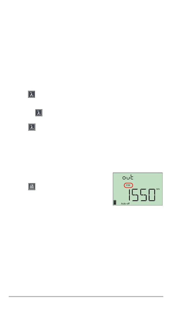 Para activar a fonte de luz e alterar o comprimento de onda: