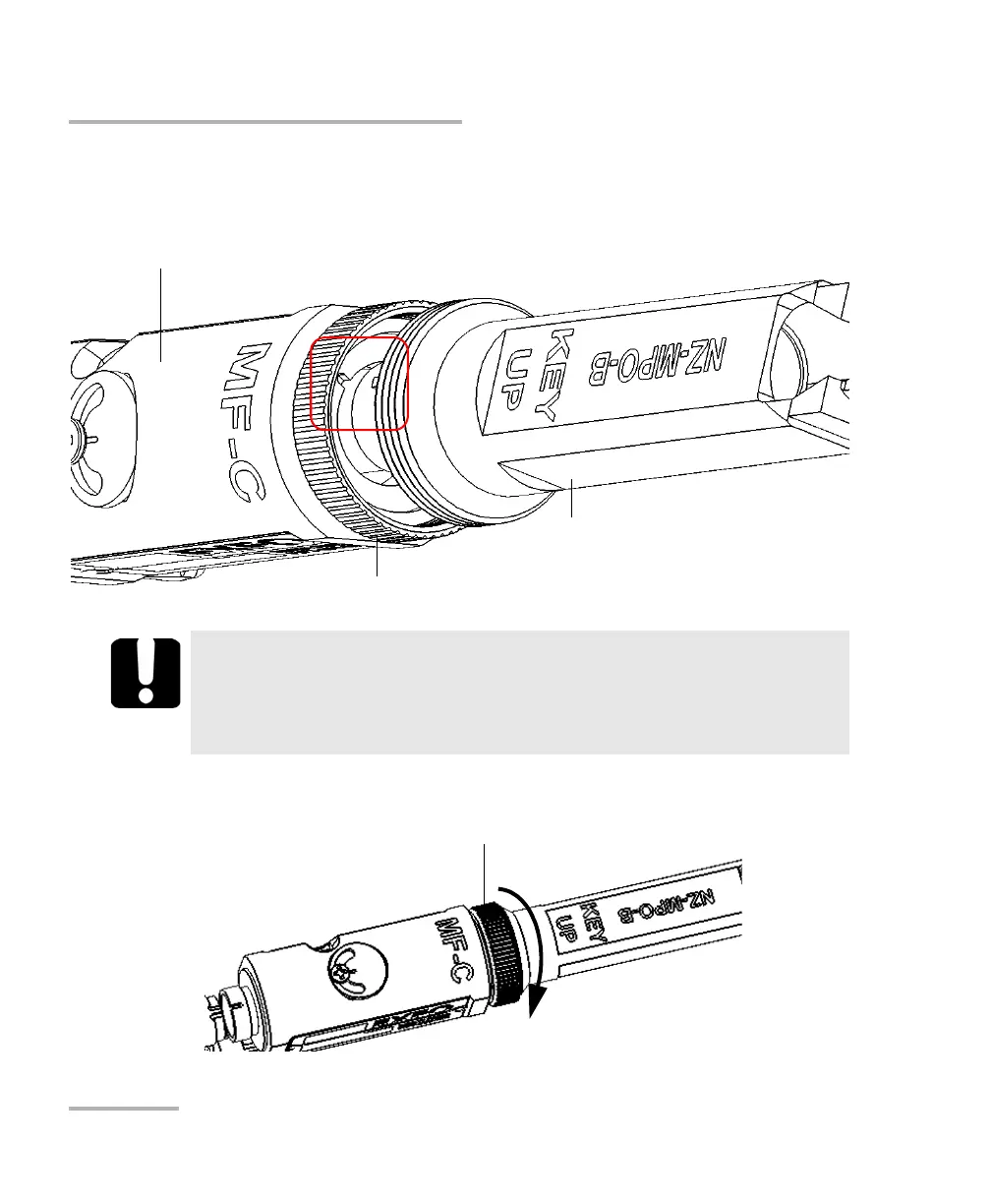 4. Align the key of the nozzle with the notch of the inspection tip until you