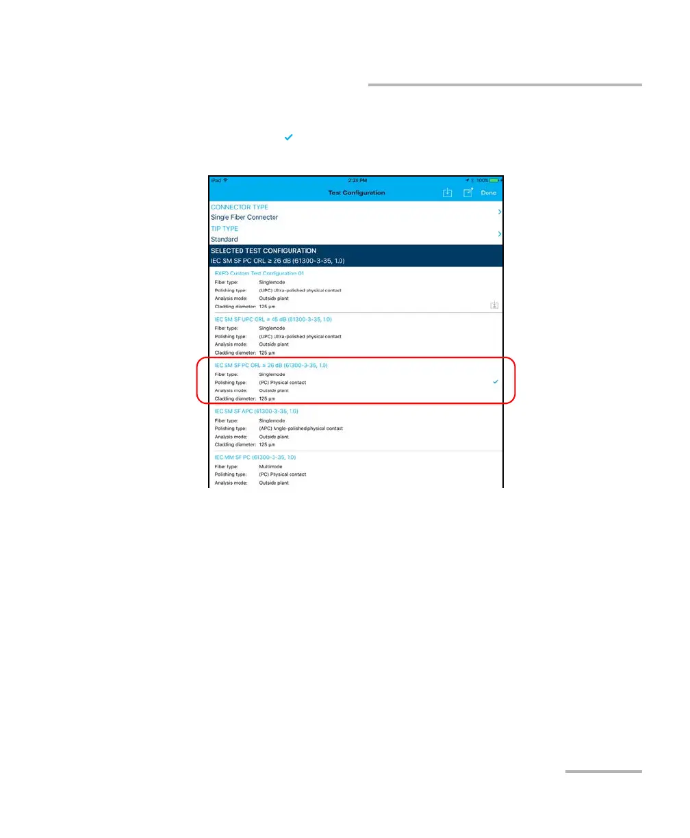 Note: You cannot select the current test configuration.