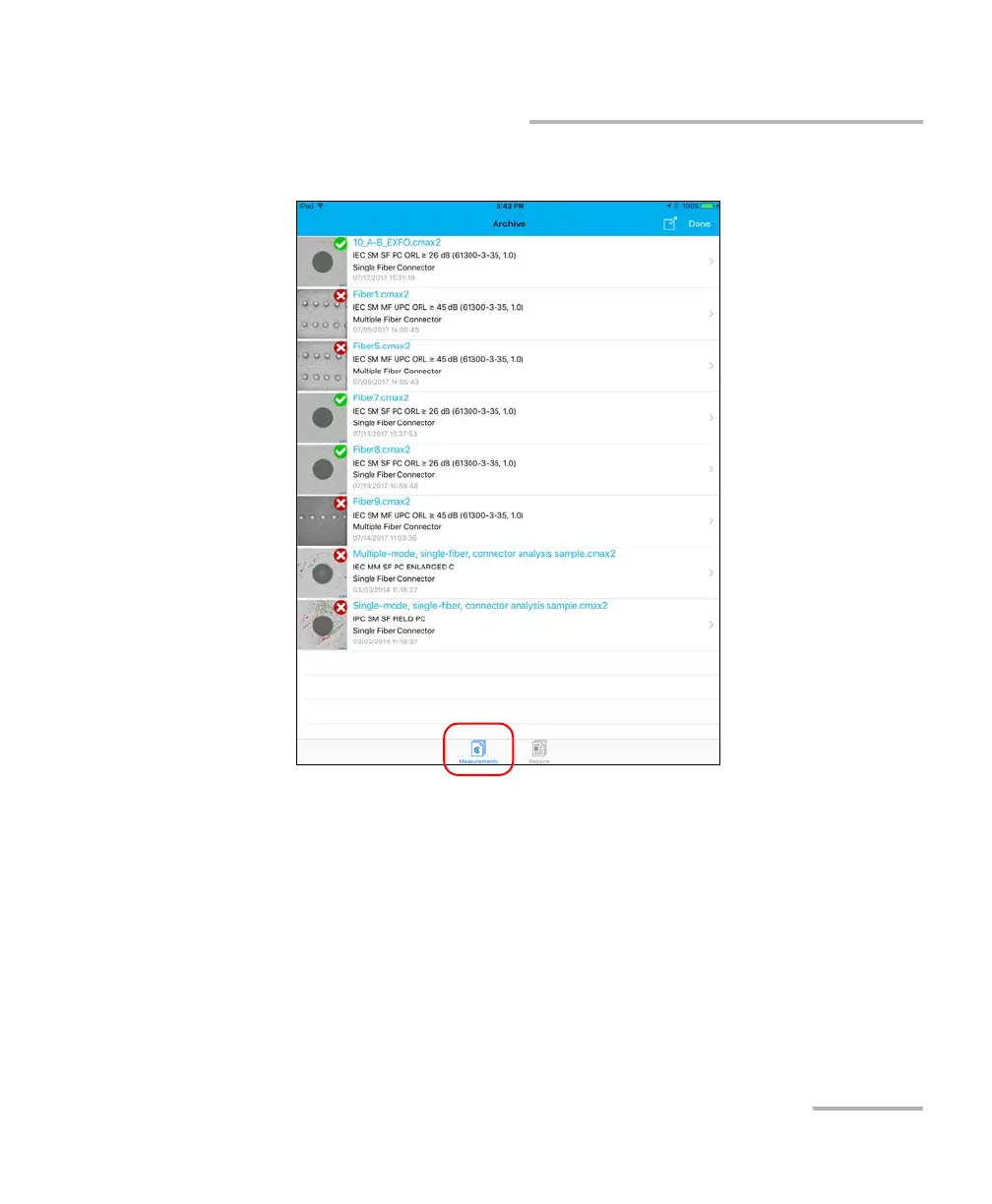 3. In the Archive window, select Measurements.