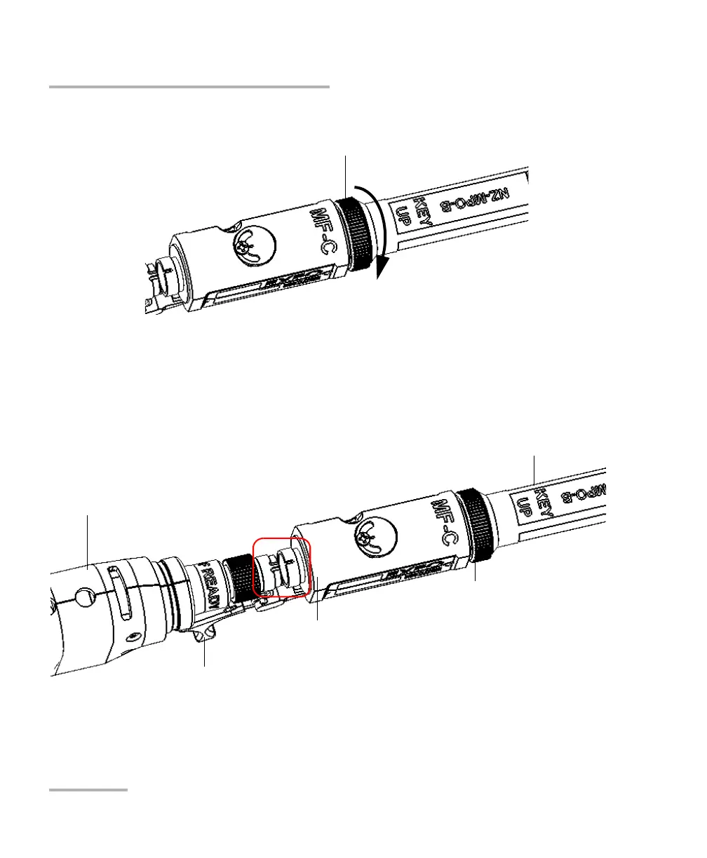 4. Insert the inspection tip on the MF-Ready probe by aligning the key of
