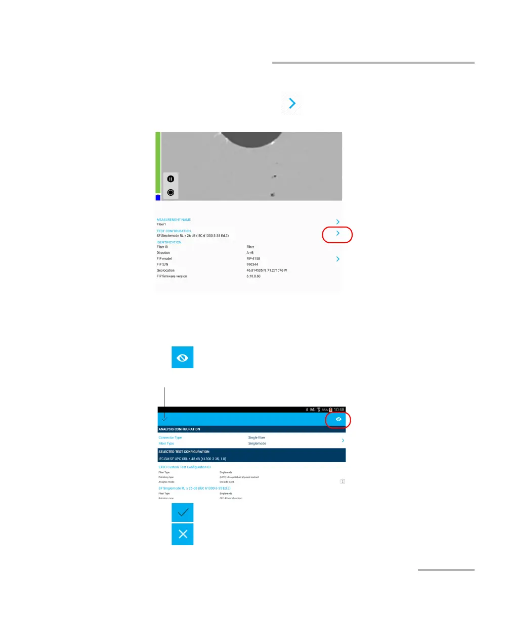 1. From the main window, tap at the end of the Test Configuration