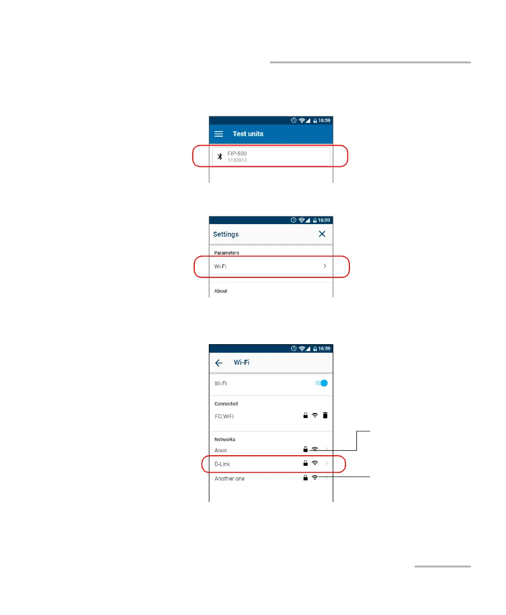 4. From the Test units screen, tap the line corresponding to your FIP-500