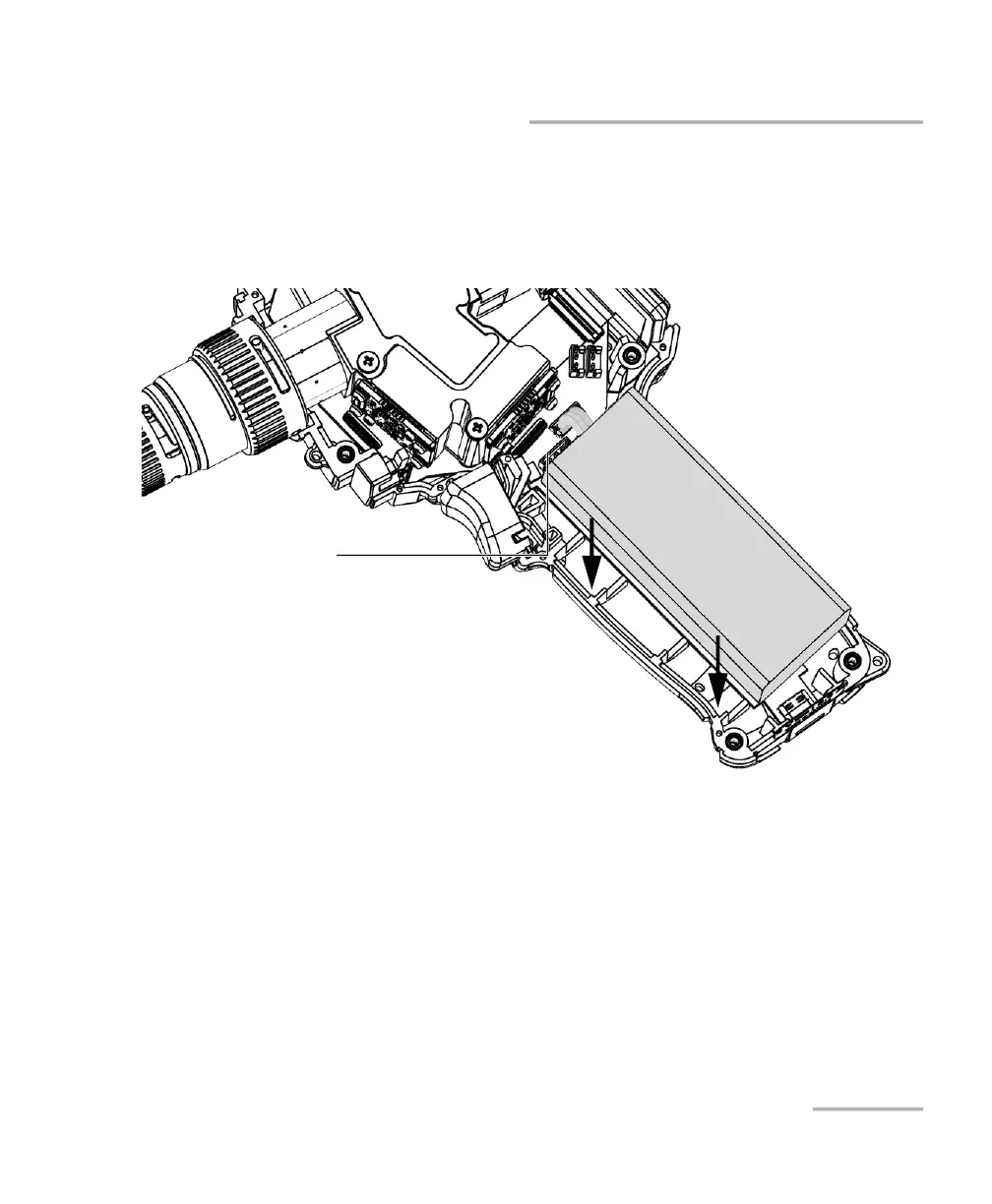 8. Place the new battery so that its wires and connector are located on