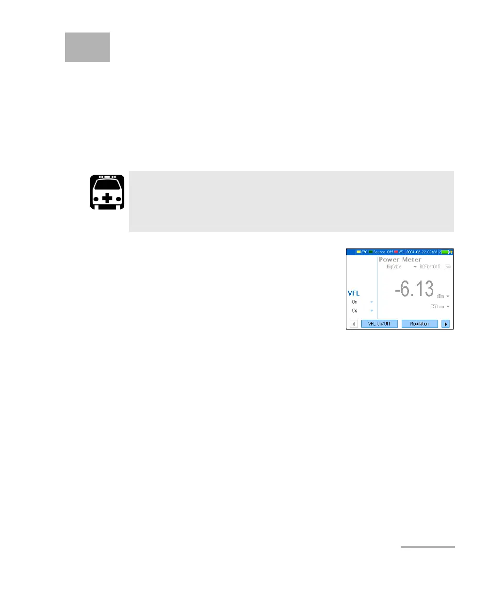 The visual fault locator (VFL) helps you identify bends, faulty connectors,