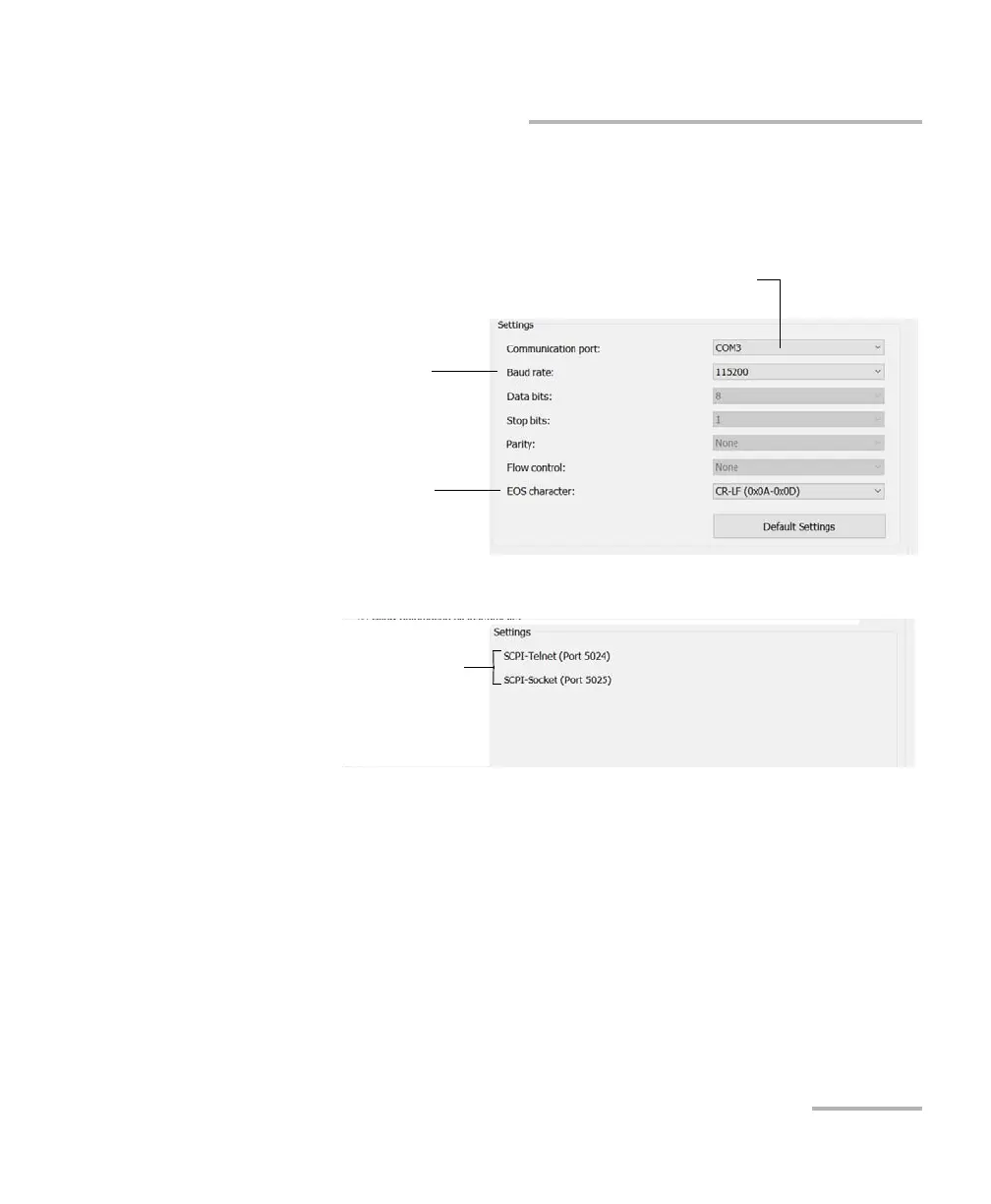 Note: When you select TCP/IP, you can send SCPI commands on both ports