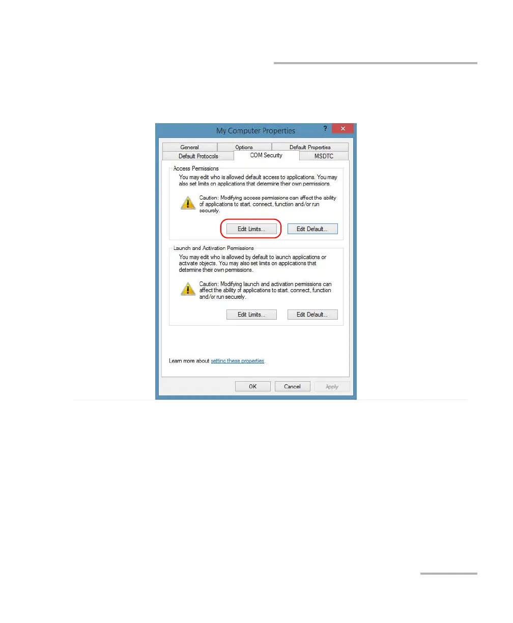 7. In the My Computer Properties dialog box, tap the COM Security tab.