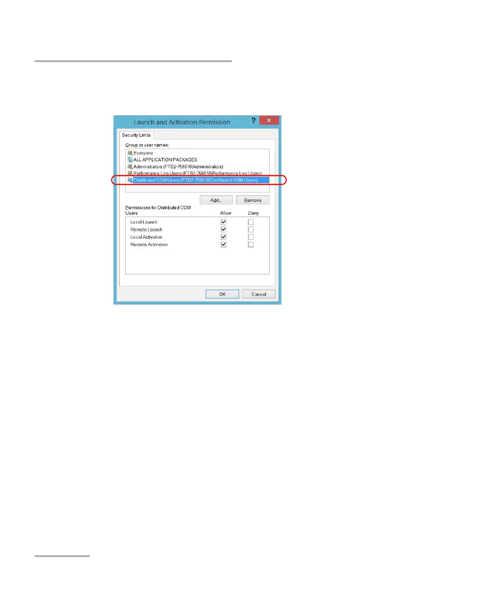 Add a user to the Distributed COM Users group (refer to Microsoft
