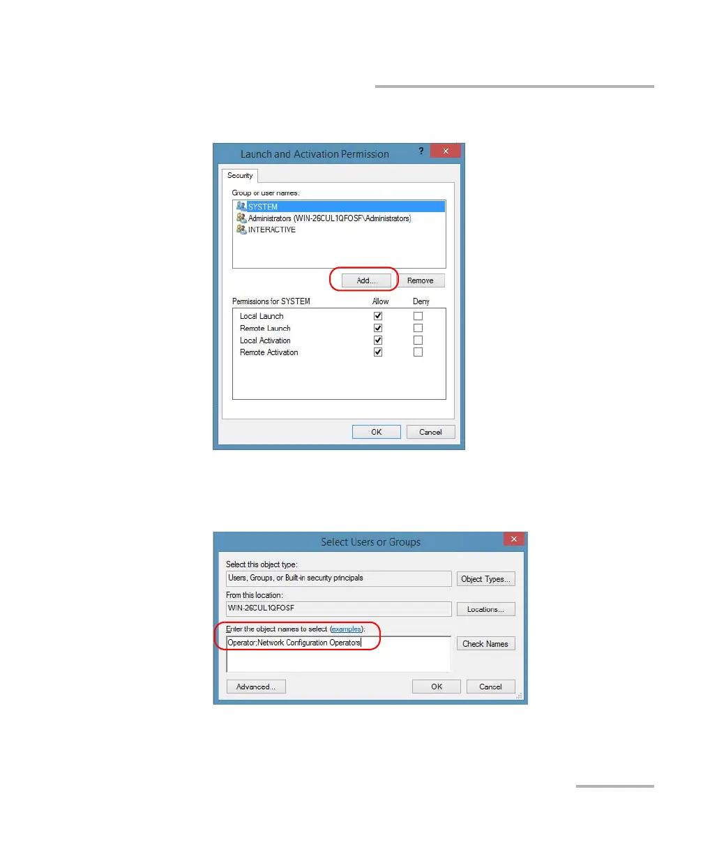7. In the Launch and Activation Permission dialog box, tap Add.