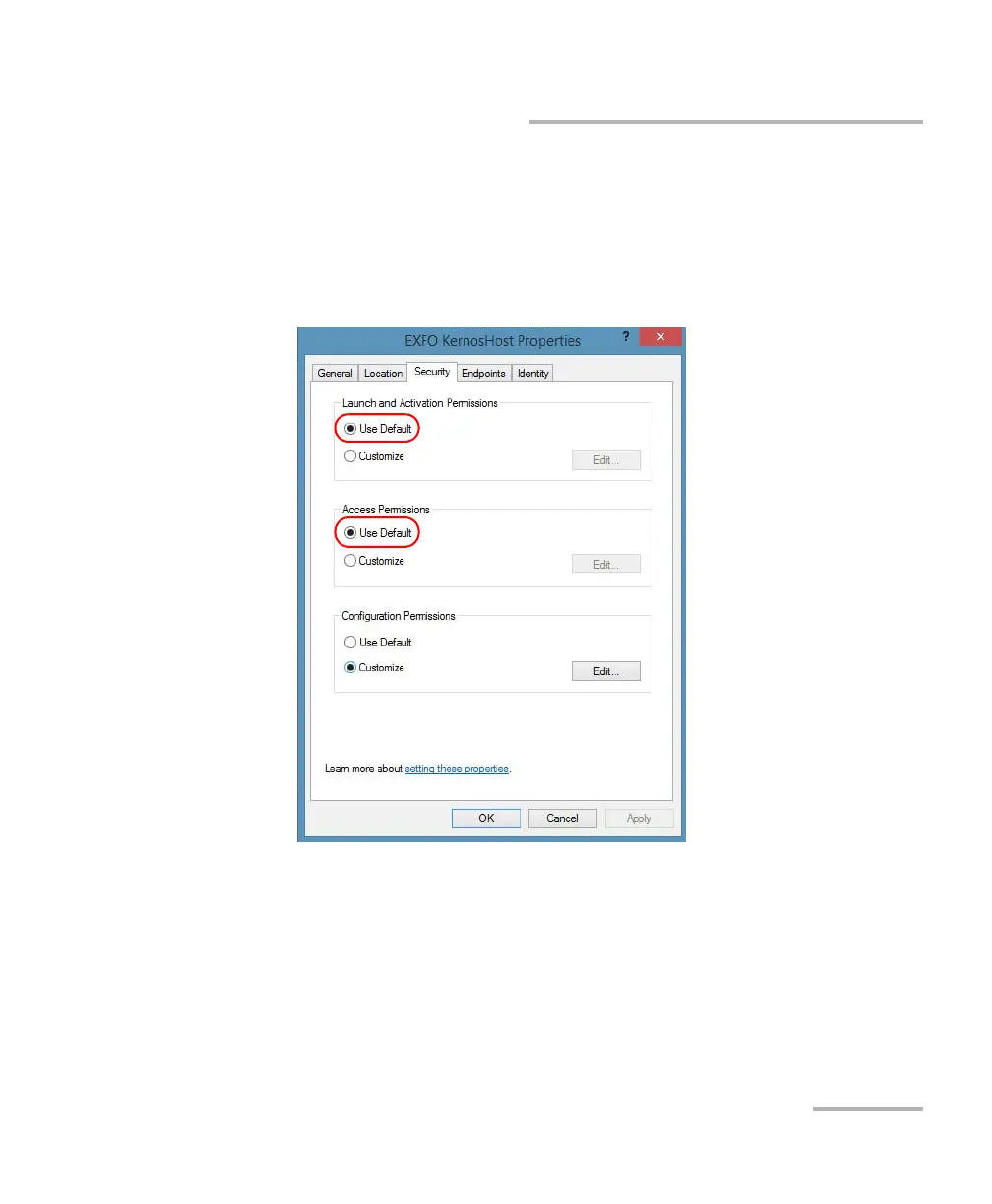 7. In the EXFO KernosHost Properties dialog box, tap the Security tab.