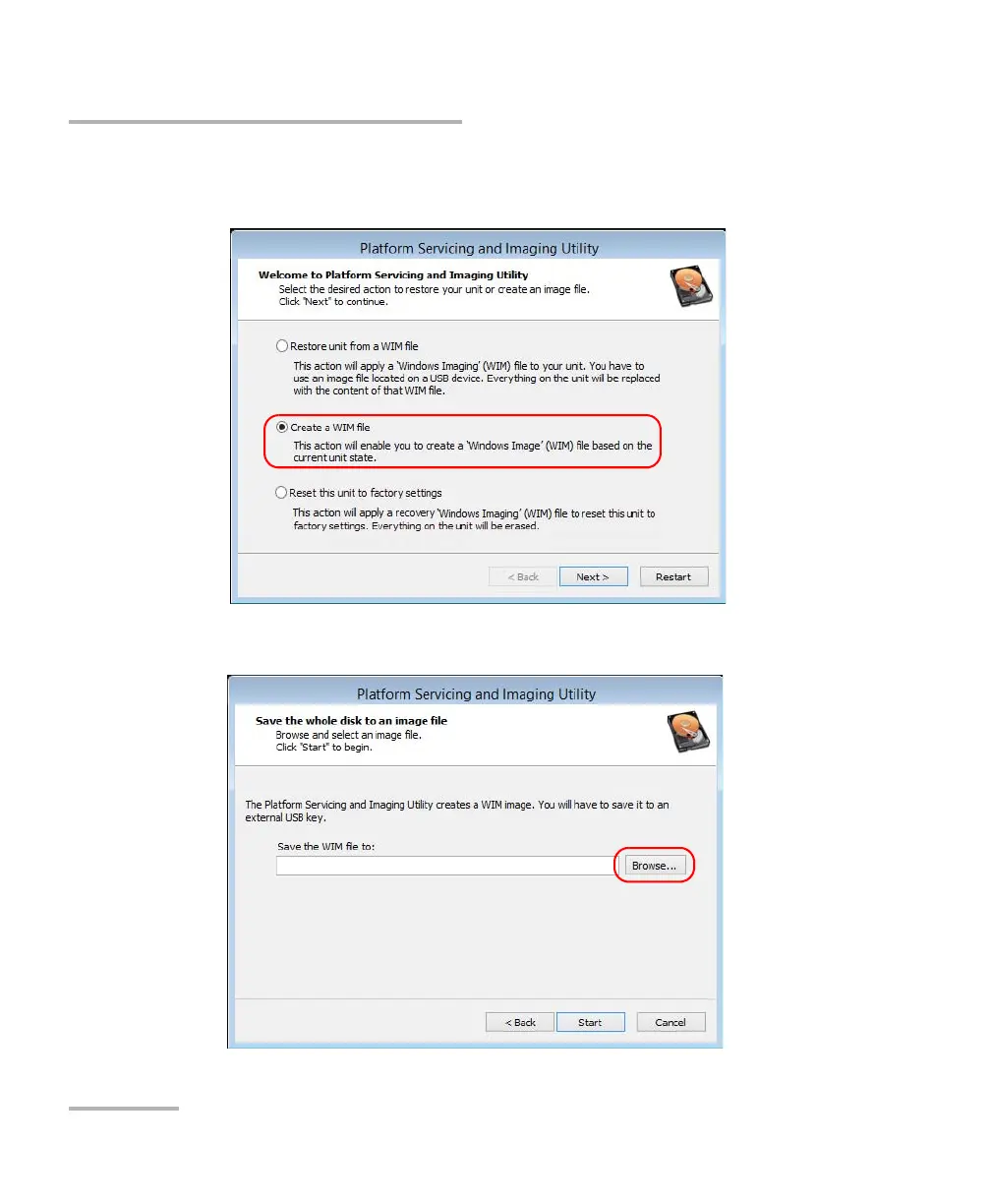 8. From the Platform Servicing and Imaging Utility wizard, select Create a