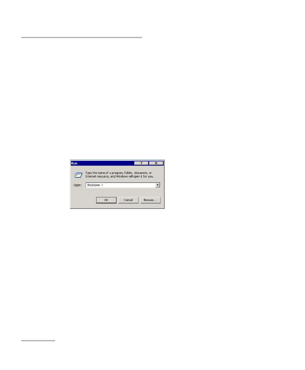 3. If you want to restart your unit, in the Open box, enter Shutdown -r.