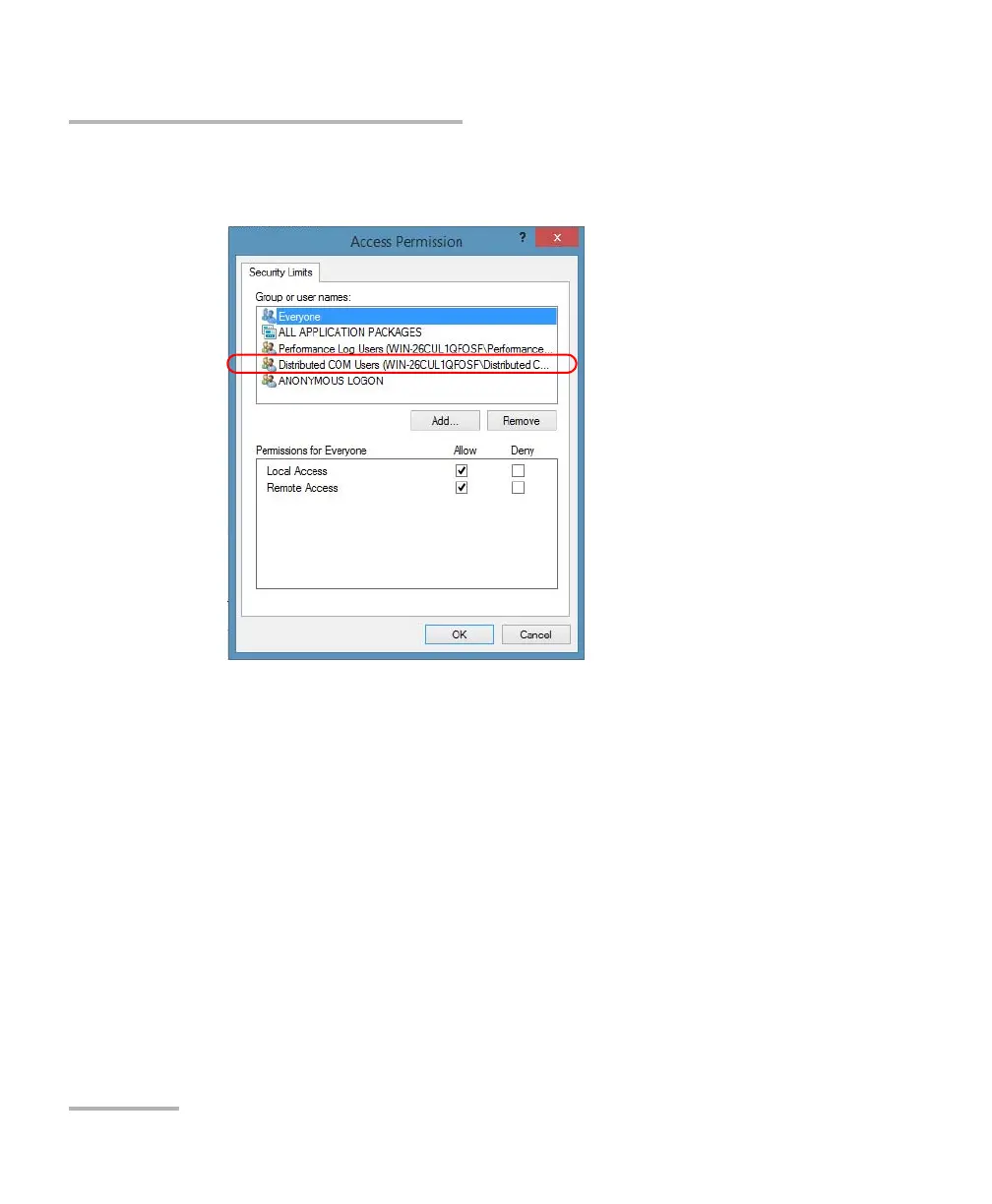 9. In the Access Permission dialog box, ensure that the Distributed COM