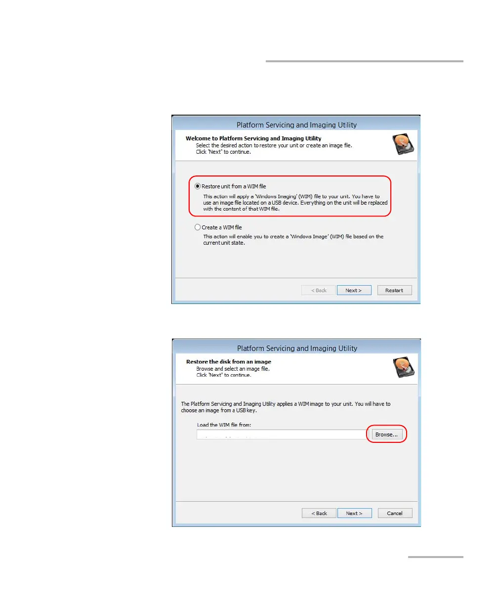 8e. From the Platform Servicing and Imaging Utility wizard, select