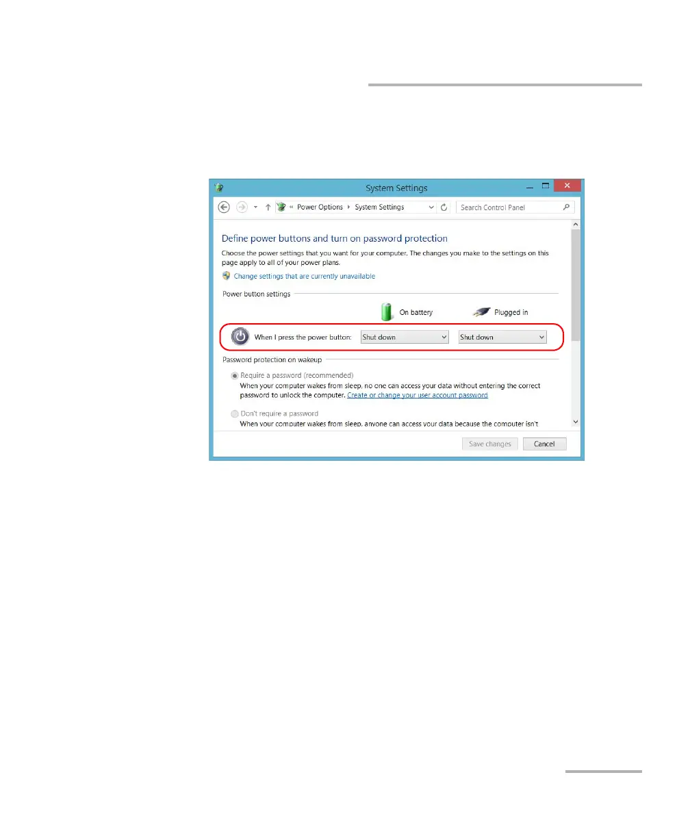 6. From the When I press the power button lists, select the desired
