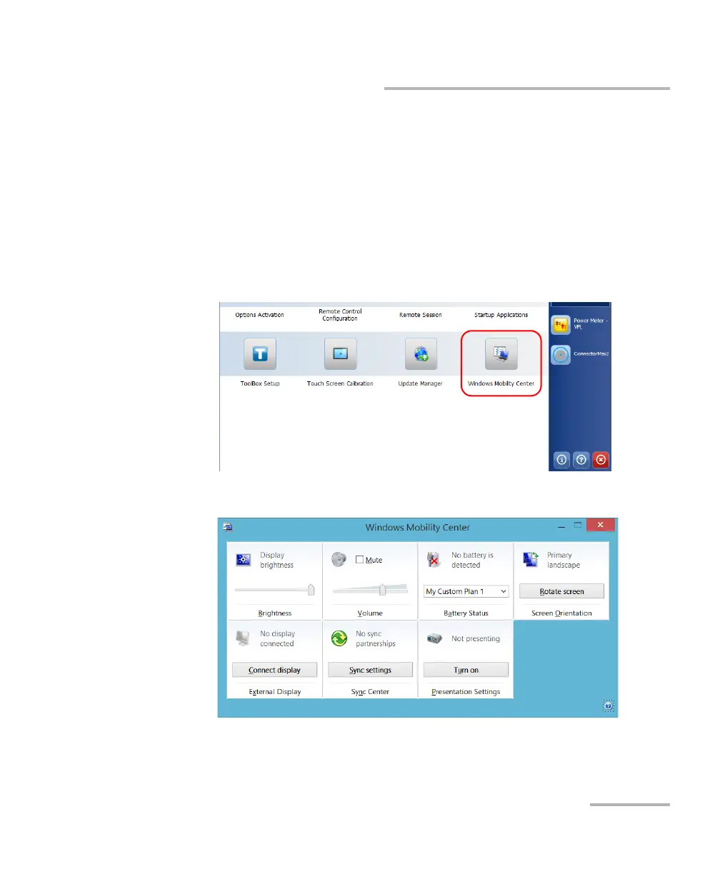To configure the parameters via Windows Mobility Center: