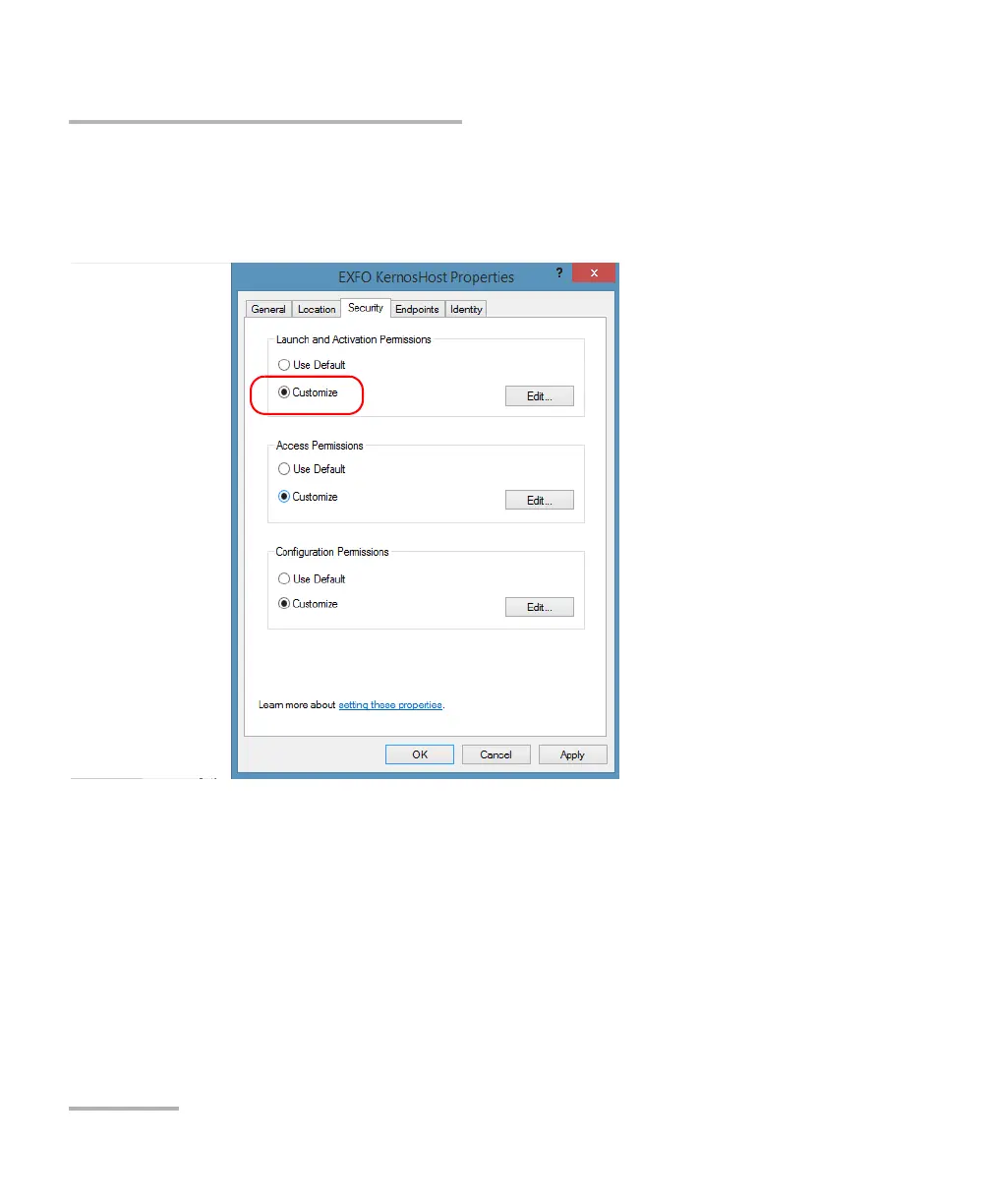 5. In the EXFO KernosHost Properties dialog box, tap the Security tab.