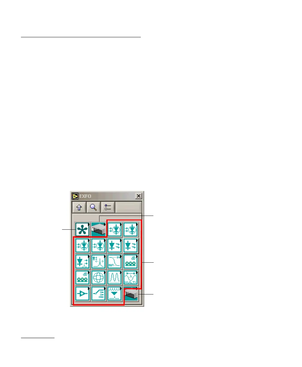 Each icon of the EXFO palette corresponds to a set of drivers that allow you