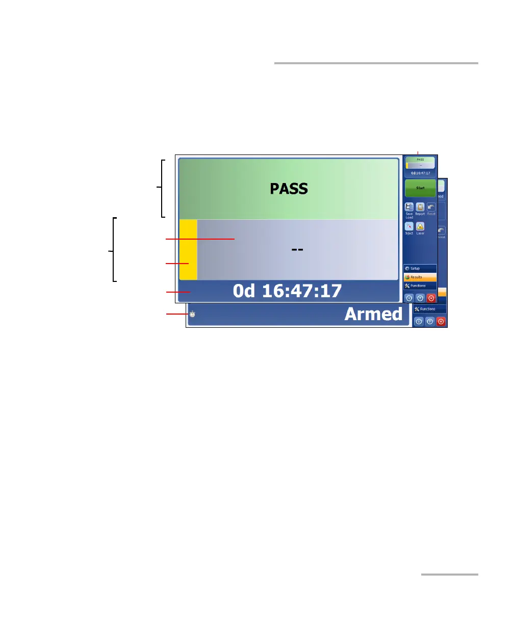 The global indicator area displays the global pass/fail verdict, global alarm,