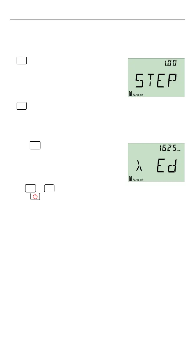2. 使用箭头键转到上一个或下一个波长值。按住它们