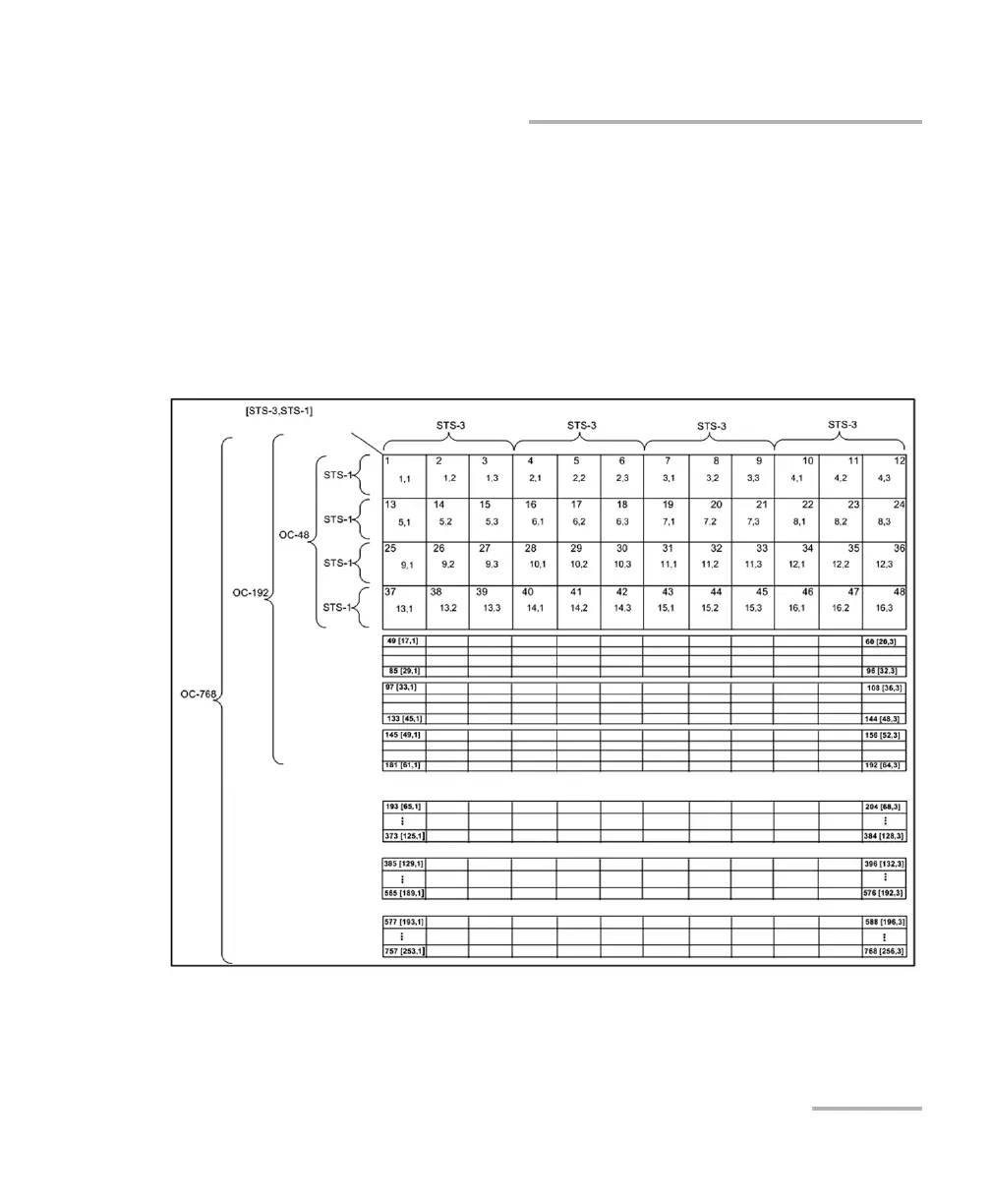 using the two-level “STS-3#,STS-1#”convention in an OC-N. For example: