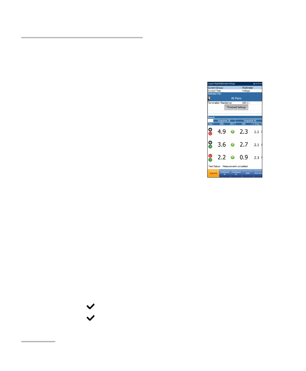 The voltage Snapshot tab shows measured volts for each lead