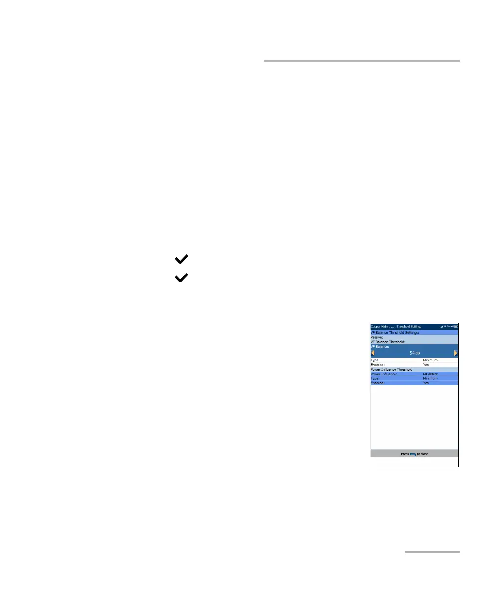 Passive VF/AC Balance Threshold values for the test.