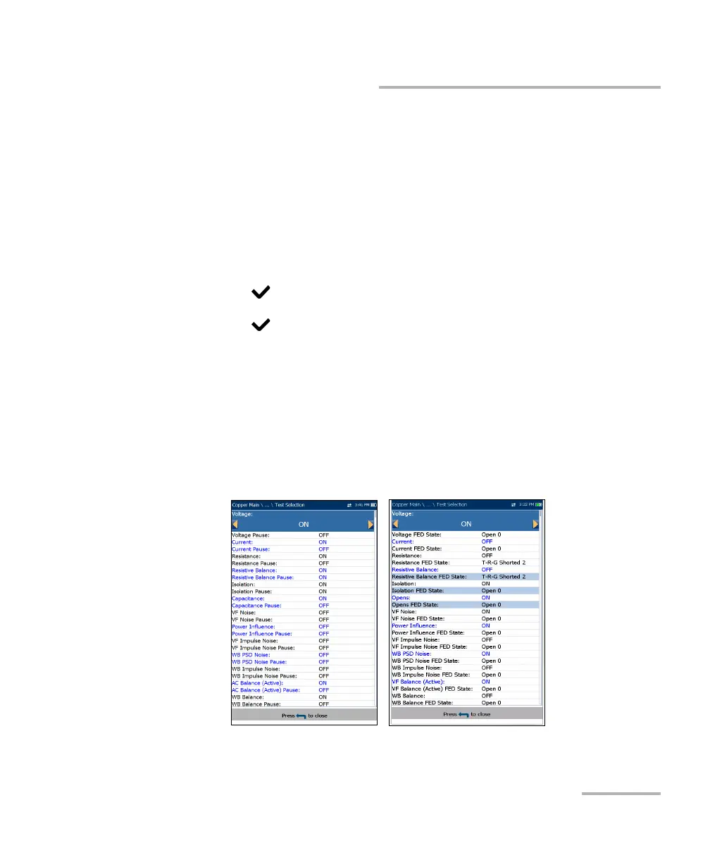 auto test, and set a Pause between tests by selecting ON or OFF. When FED