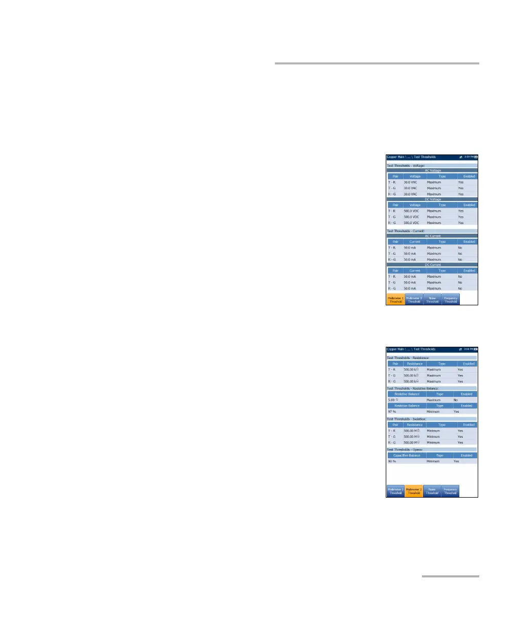 The Test Thresholds pages display read-only threshold values for each test.