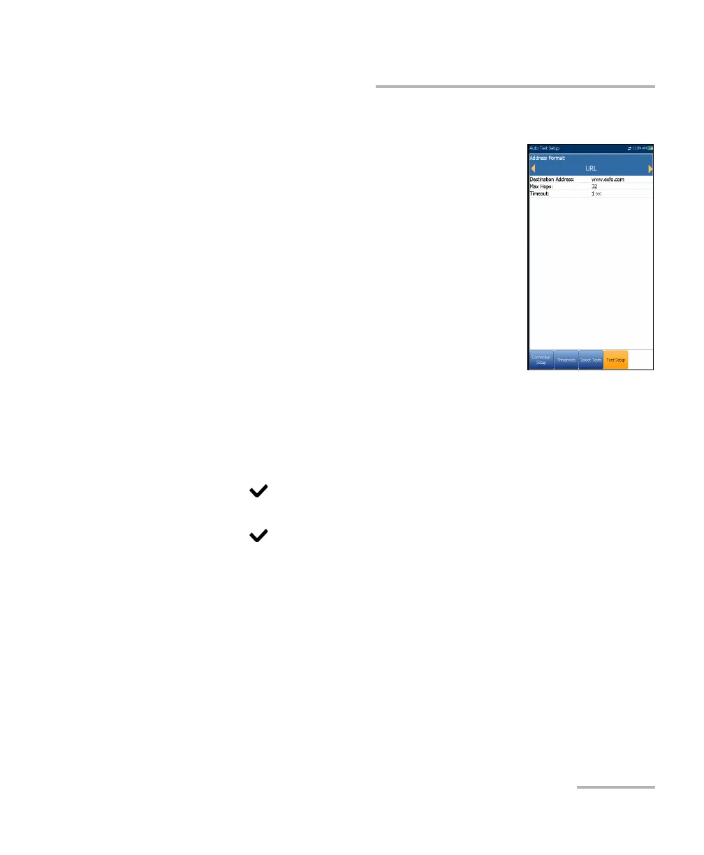 The Traceroute Test Setup tab allows you to configure