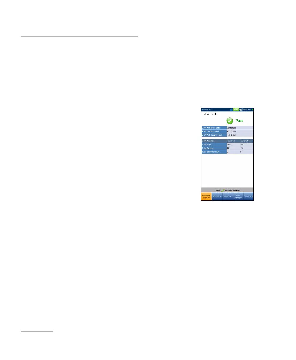 Bytes, Packets, and Ethernet Errors are also displayed during the test.