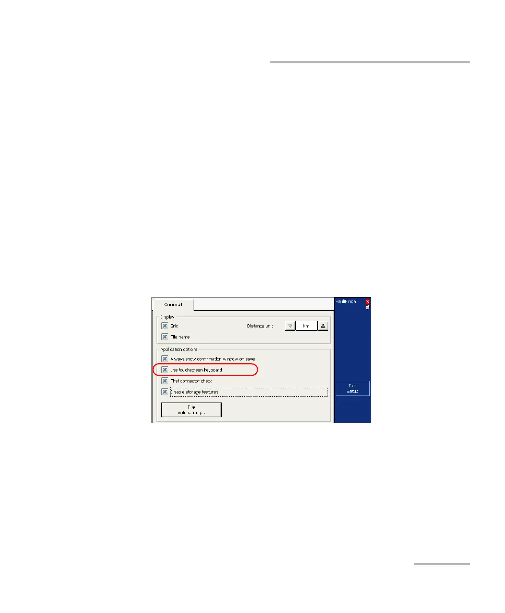 Note: Hiding or displaying the touchscreen keyboard in Fault Finder mode has no