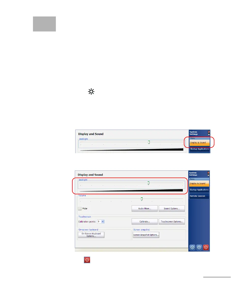To adjust the display brightness: