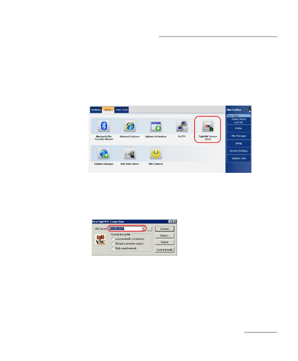 software, select the Utilities tab, then tap TightVNC Server Start.