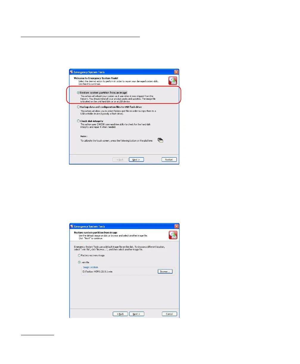 4. From the main window, select Restore system partition from an