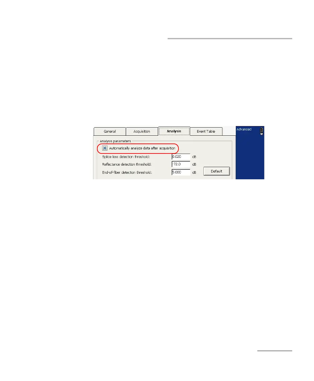 3. If you want the OTDR to automatically analyze an acquired trace,