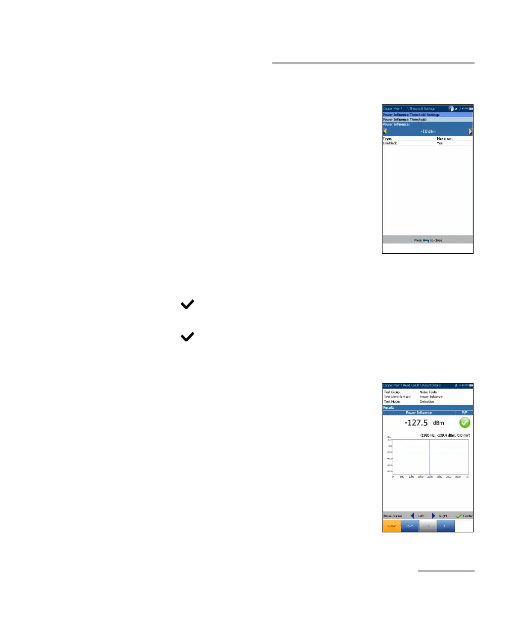 Threshold Power Influence values for the test.