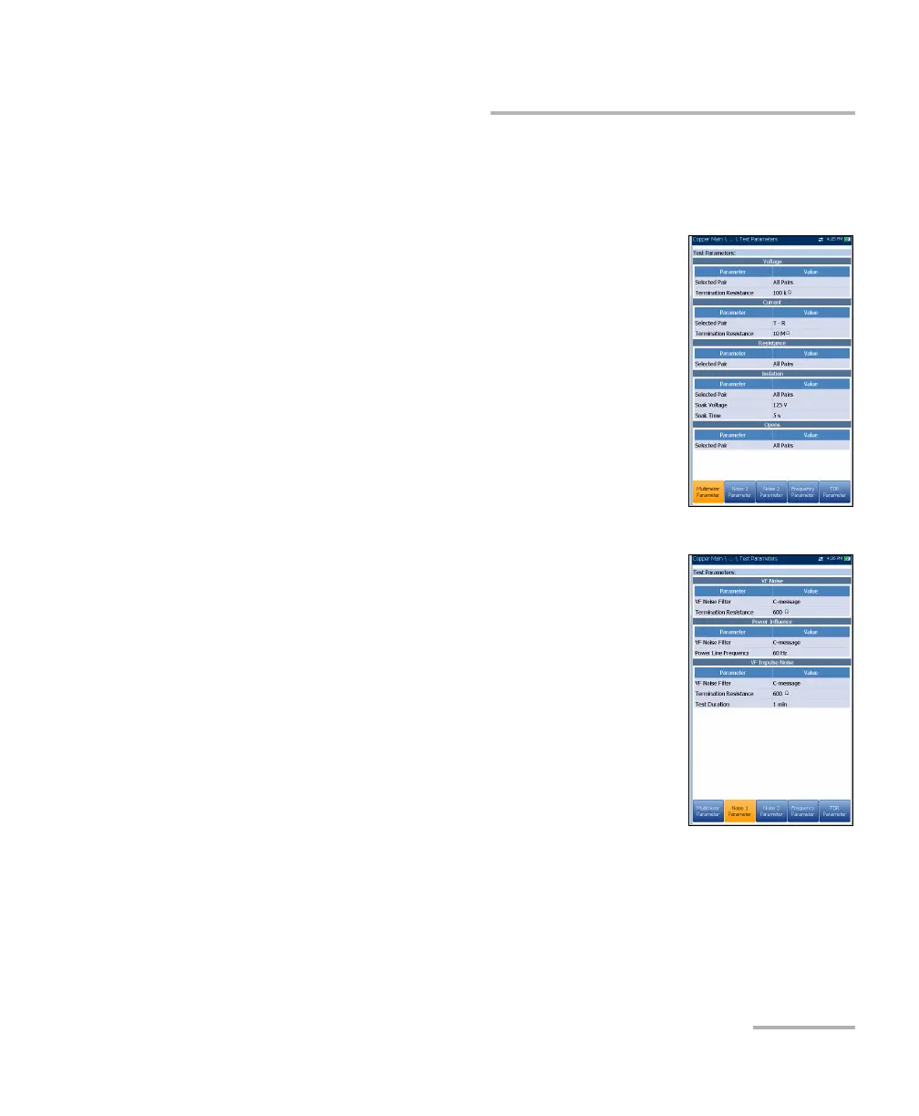 details of the cable parameters for all multimeter tests.