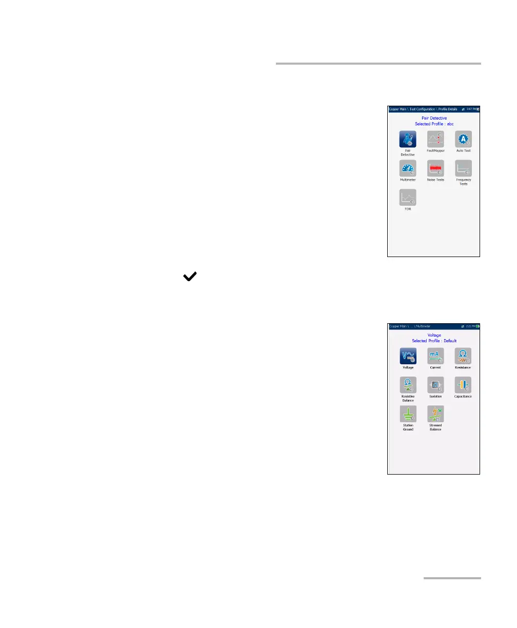 The profile details Multimeter main menu allows you