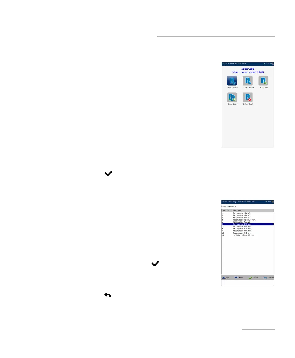 desired entry and press . The Cable # in Use is