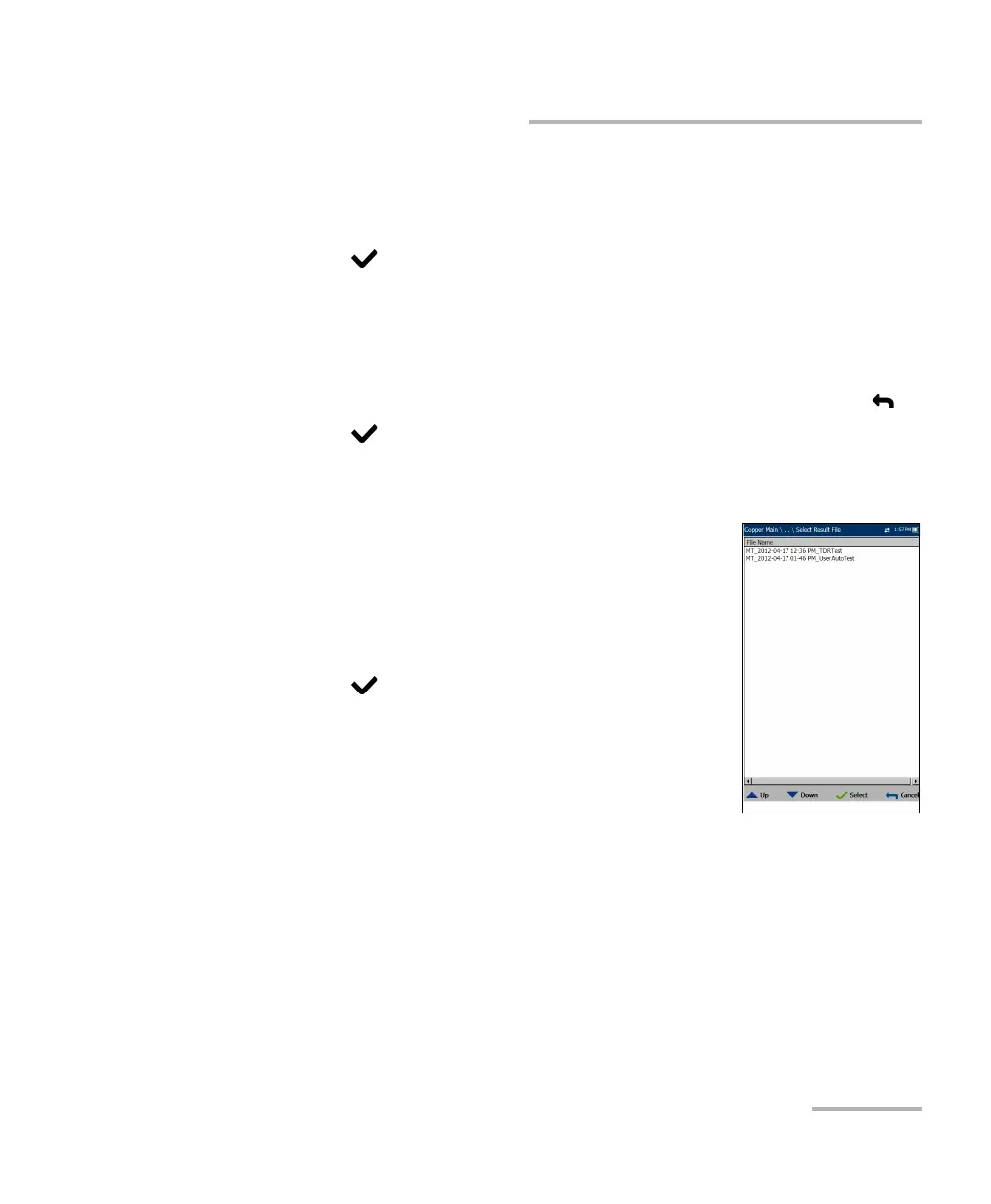 Select Result File page displays a list of existing file