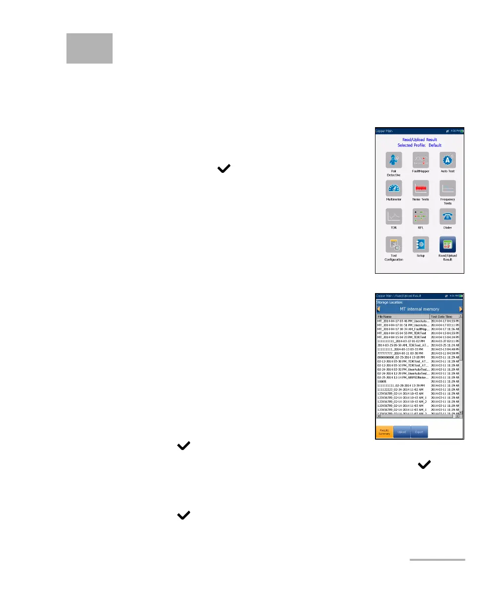 4. In the list, press the up/down arrows to select the test results file.