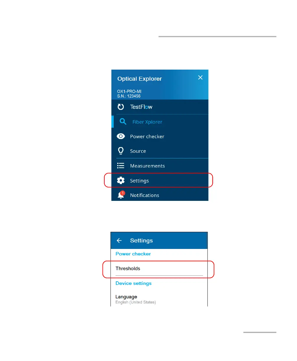 To set power or loss thresholds from the Settings page: