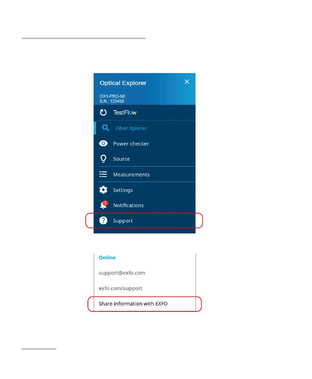 2. Tap Share information with EXFO.