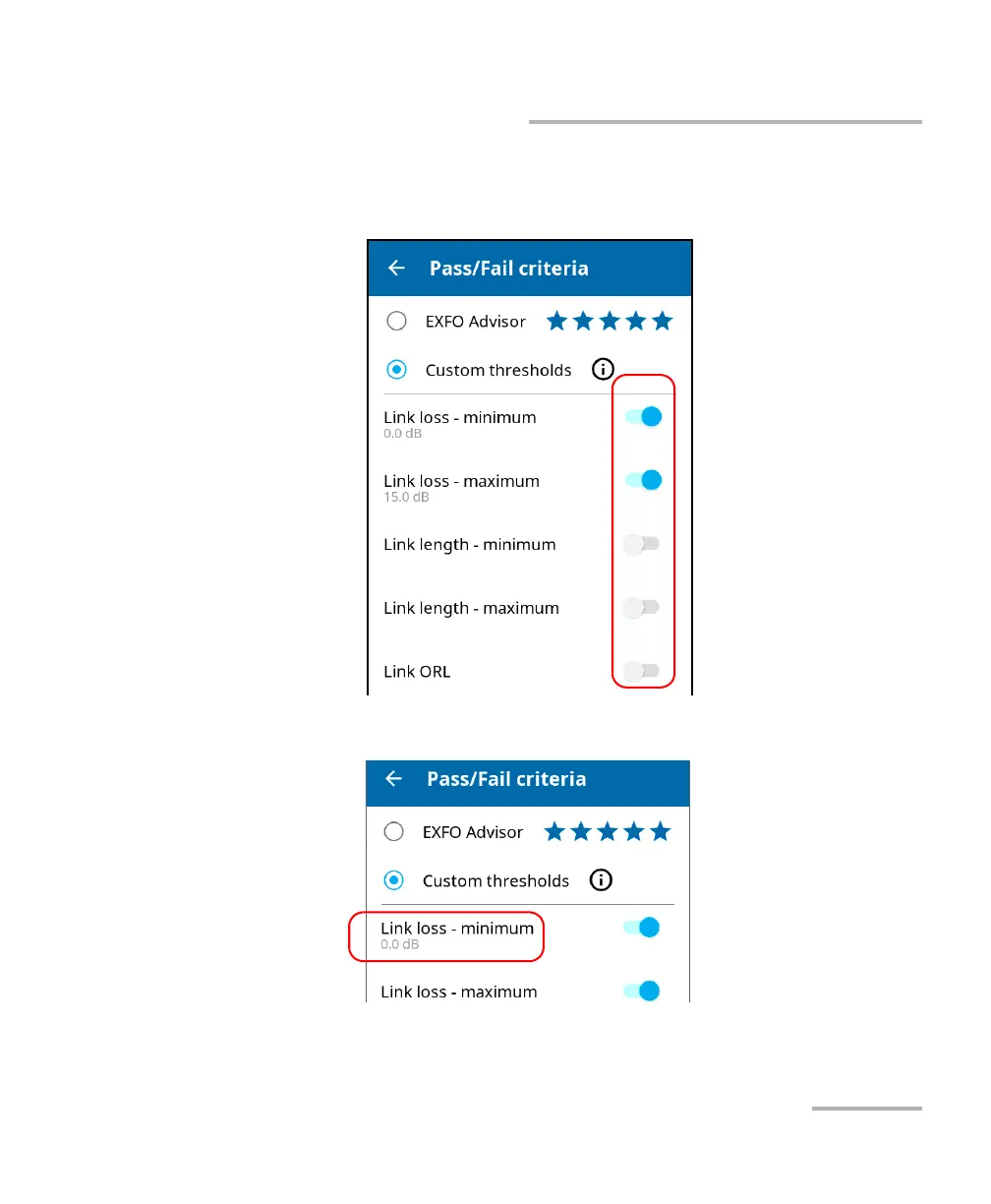 Working With Custom Pass/Fail Thresholds or EXFO Advisor
