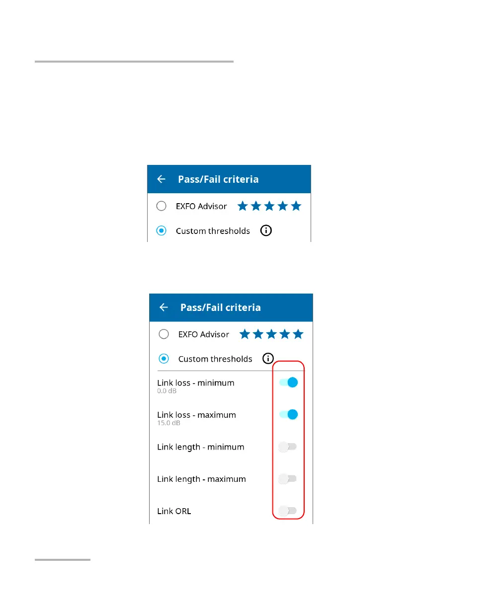 Working With Custom Pass/Fail Thresholds or EXFO Advisor