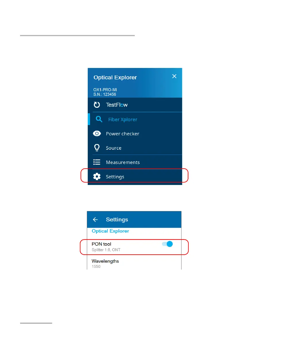 Note: If you do not see PON tool in the settings, it means that your current OX1
