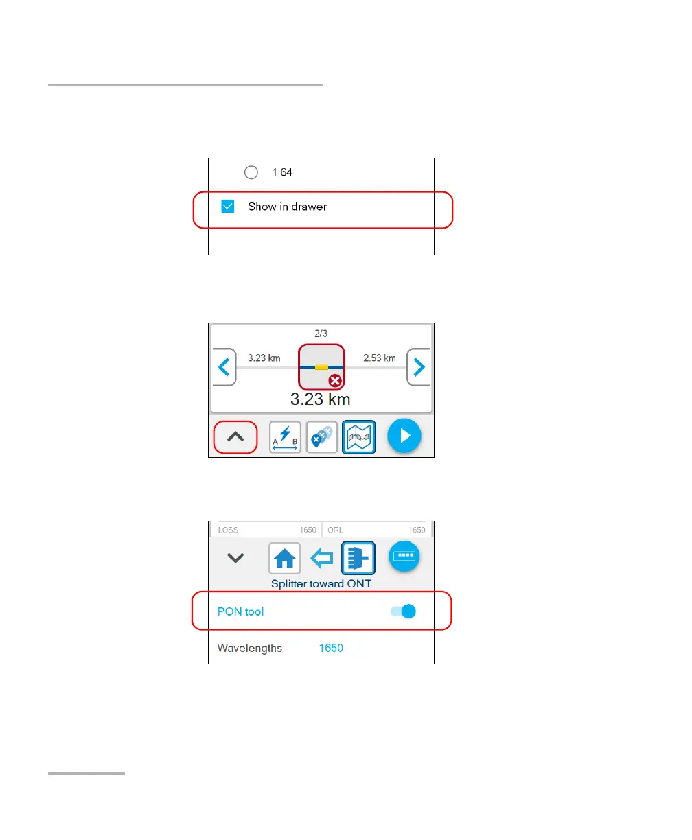 1. From Fiber Xplorer, tap the arrow to access the drawer.
