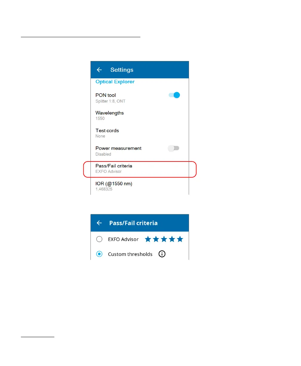 2. Under Optical Explorer, tap Pass/Fail criteria.
